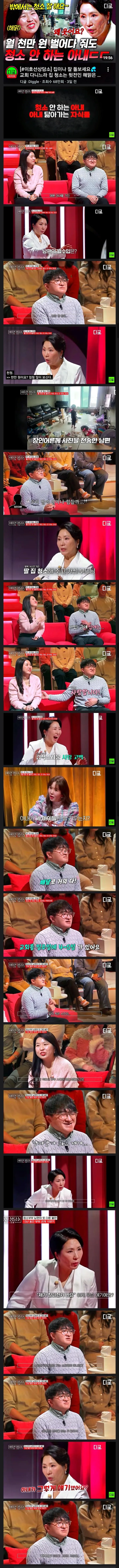 월 천만원을 벌어다 줘도 집 청소를 안하는 아내 작성자 정보 F킬라들의수다 작성 작성일 2026.02.10 17:00 컨텐츠 정보 135 조회 목록 관리 글수정 글삭제 본문 하이라이트 영상) 관련자료 이전 요즘 한효주 김이라고 뜬다는 할아버지 김 작성일 2026.02.10 17:00 다음 현재 지상파TV 올림픽 선수 인터뷰방식 작성일 2026.02.10 17:00 댓글 0 등록된 댓글이 없습니다. 로그인한 회원만 댓글 등록이 가능합니다. 목록 관리 글수정 글삭제