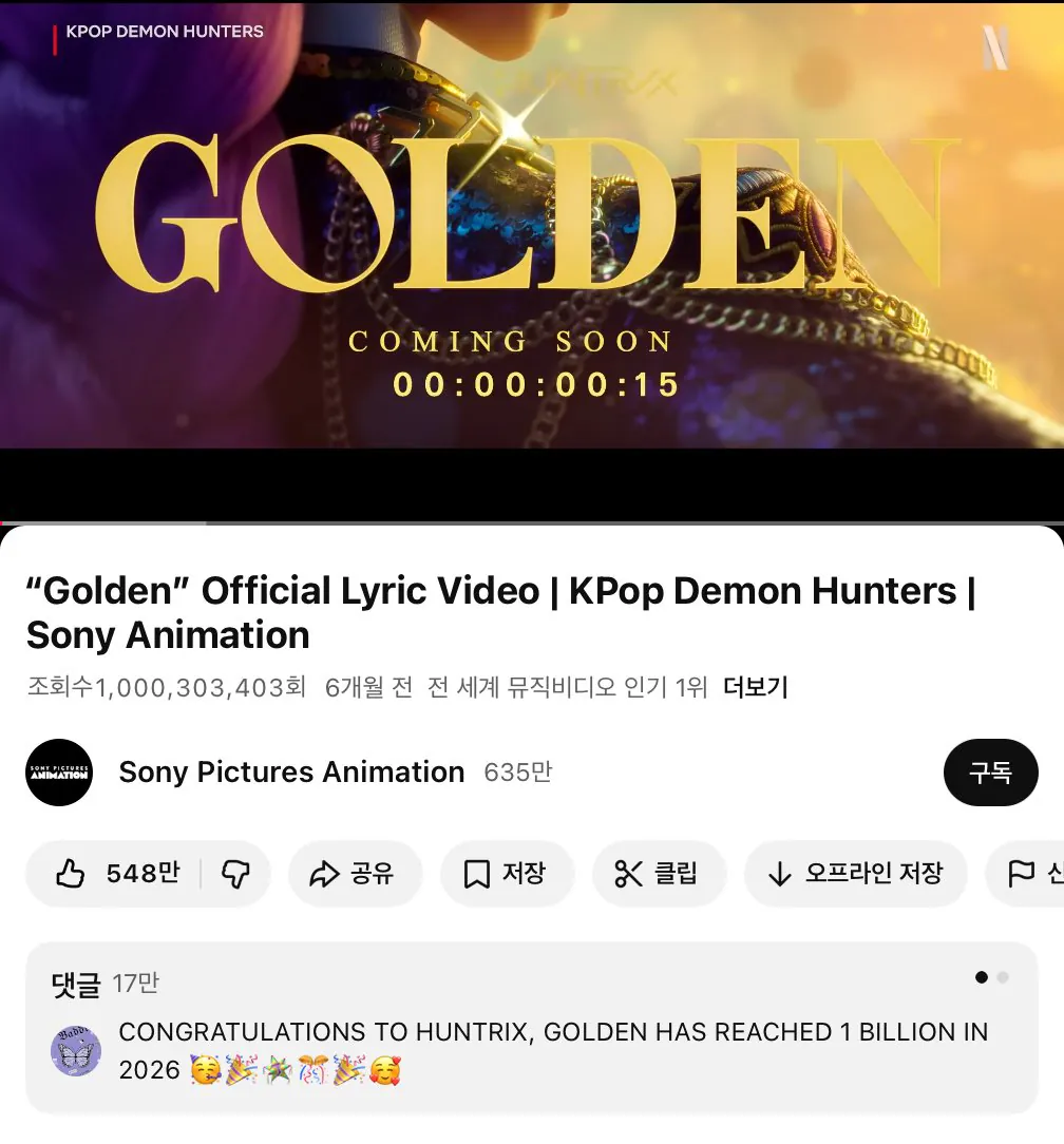 오늘 공개된 Golden 라이브 무대 작성자 정보 순대릴라 작성 작성일 2026.01.09 20:00 컨텐츠 정보 200 조회 목록 관리 글수정 글삭제 본문 지미 키멜 라이브에서 공개한 Golden (Glowin’ Version) 최근 라이브 무대 할 때마다 부르는 키가 점점 올라가는 중ㄷㄷ 그리고 오늘 오전 6개월만에 공식 뮤비 10억뷰 달성 관련자료 이전 페이커 고소한다는 룰러 작성일 2026.01.09 20:00 다음 노량진이 ㅅ스의 왕국인 이유 작성일 2026.01.09 20:00 댓글 0 등록된 댓글이 없습니다. 로그인한 회원만 댓글 등록이 가능합니다. 목록 관리 글수정 글삭제