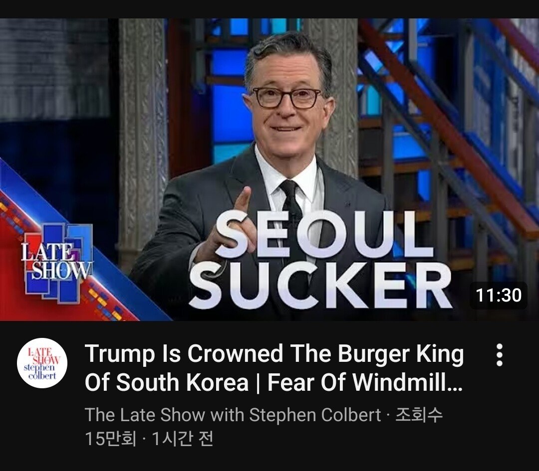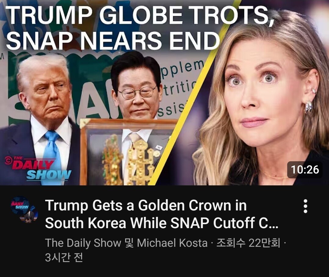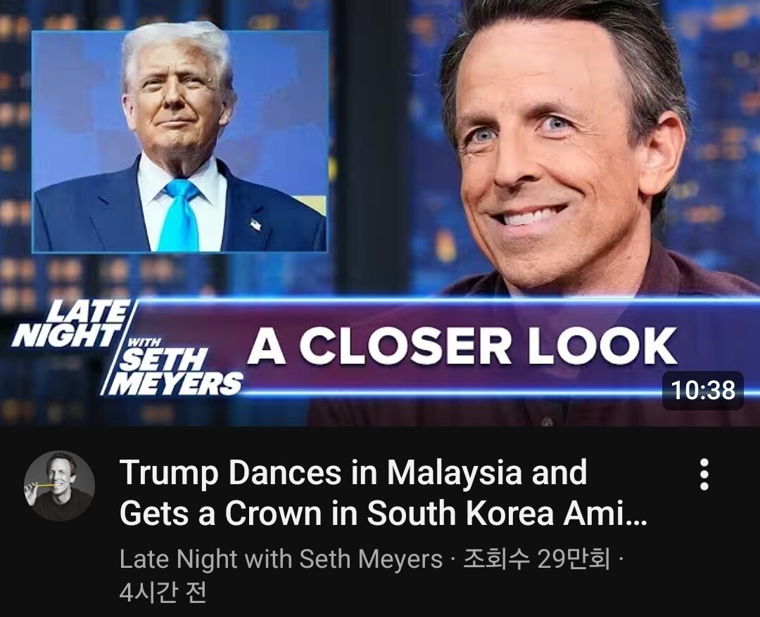 트럼프 금관 받은 거 풍자중인 미국 코미디 토크쇼 작성자 정보 슈크림 작성 작성일 2025.10.30 16:00 컨텐츠 정보 140 조회 목록 관리 글수정 글삭제 본문 관련자료 이전 생후 한 달 된 신생아 때리고 던지는 산후 도우미 작성일 2025.10.30 16:00 다음 엔비디아 젠슨황, 오늘 오후 김포공항 입국예정 작성일 2025.10.30 16:00 댓글 0 등록된 댓글이 없습니다. 로그인한 회원만 댓글 등록이 가능합니다. 목록 관리 글수정 글삭제
