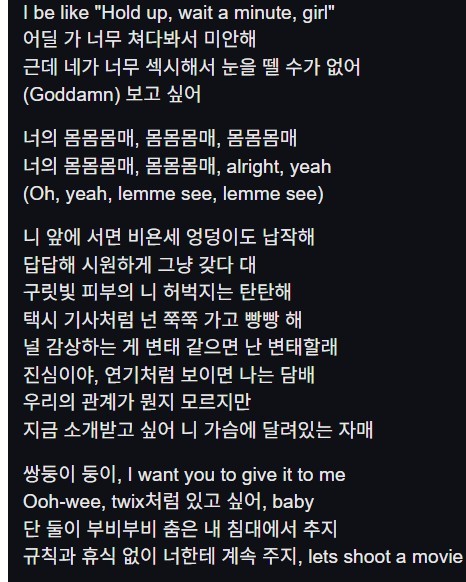 파티장에서 박재범이 부른 몸매 및 아이들 퀸카 가사로 논란되기 시작