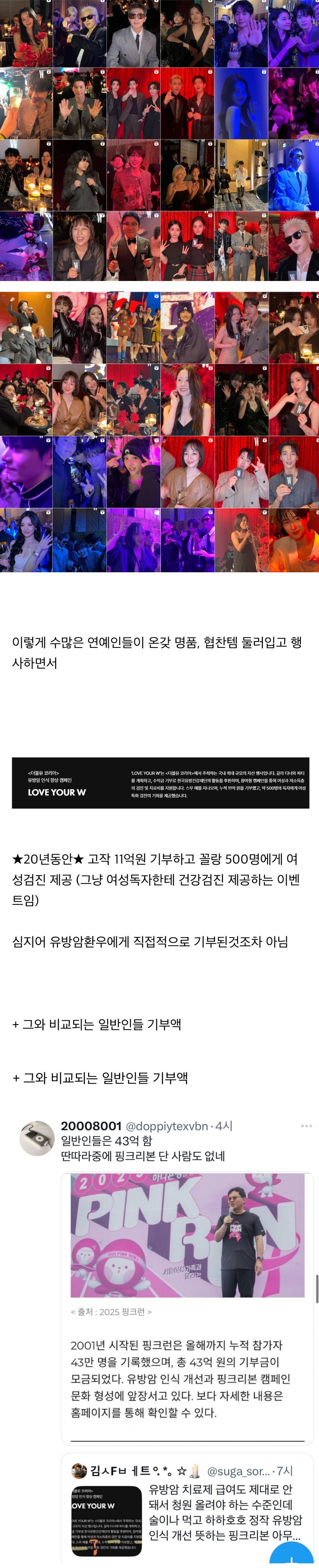 점점 논란 확산중이며 사태 커지는중 w 매거진 주최하는 유방암 파티 매년 하는 행사고