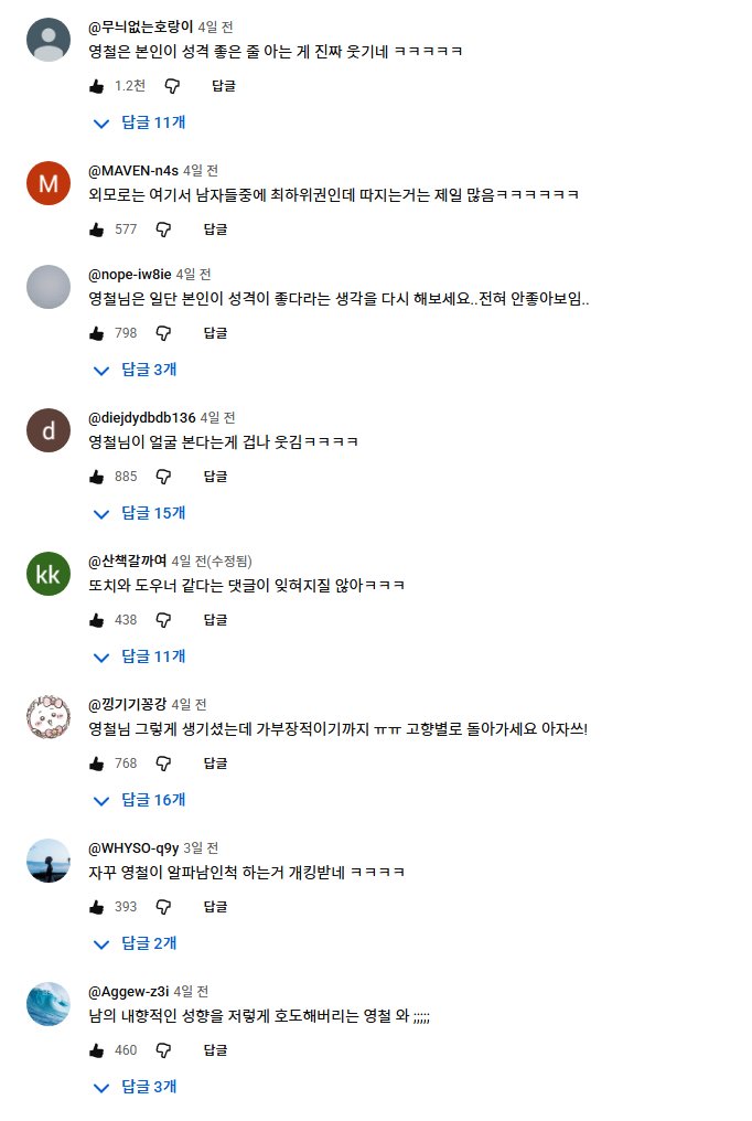 영철 성격...