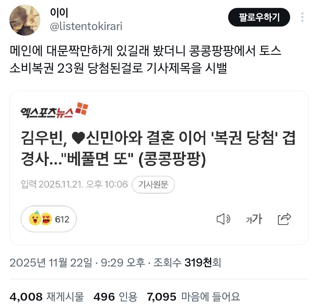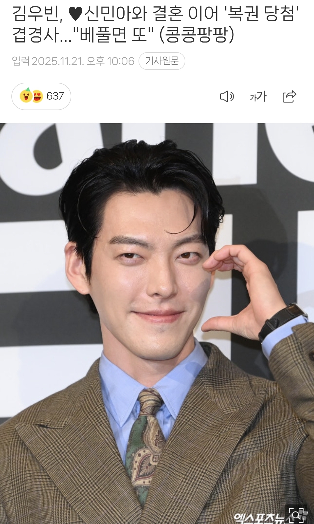 김우빈, ♥신민아와 결혼 이어 '복권 당첨' 겹경사