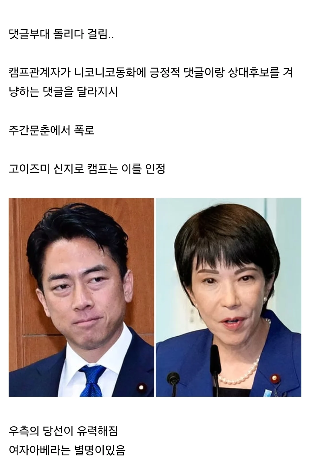 일본 차기 총리 유력 후보 펀쿨섹좌 ㅈ망함 작성자 정보 오즈의맙소사 작성 작성일 2025.09.26 15:00 컨텐츠 정보 195 조회 목록 관리 글수정 글삭제 본문 관련자료 이전 qwer 한테 돌판 불문율이 어쩌고 따지는게 어이 없는 이유 작성일 2025.09.26 15:00 다음 네팔인 : 한라산 꼴랑 1,947m밖에 안돼? 작성일 2025.09.26 15:00 댓글 0 등록된 댓글이 없습니다. 로그인한 회원만 댓글 등록이 가능합니다. 목록 관리 글수정 글삭제