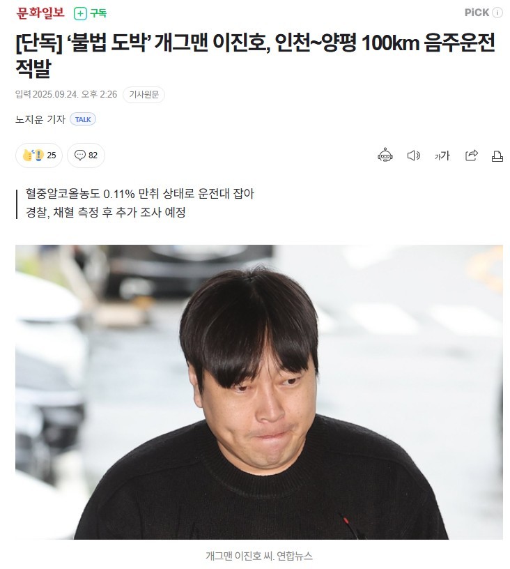 개그맨 이진호 100km 음주운전 적발 작성자 정보 달려야하니 작성 작성일 2025.09.24 16:00 컨텐츠 정보 141 조회 목록 관리 글수정 글삭제 본문 https://n.news.naver.com/mnews/article/021/0002738930?sid=102 도박에 빚에 음주운전에... ㄷㄷ 관련자료 이전 아이돌팬 & 스포츠팬 서로 이해 못하는 지점 작성일 2025.09.24 16:00 다음 “쯔양도 처참한 쓴맛” 결국 최악 0% 찍었다 작성일 2025.09.24 16:00 댓글 0 등록된 댓글이 없습니다. 로그인한 회원만 댓글 등록이 가능합니다. 목록 관리 글수정 글삭제