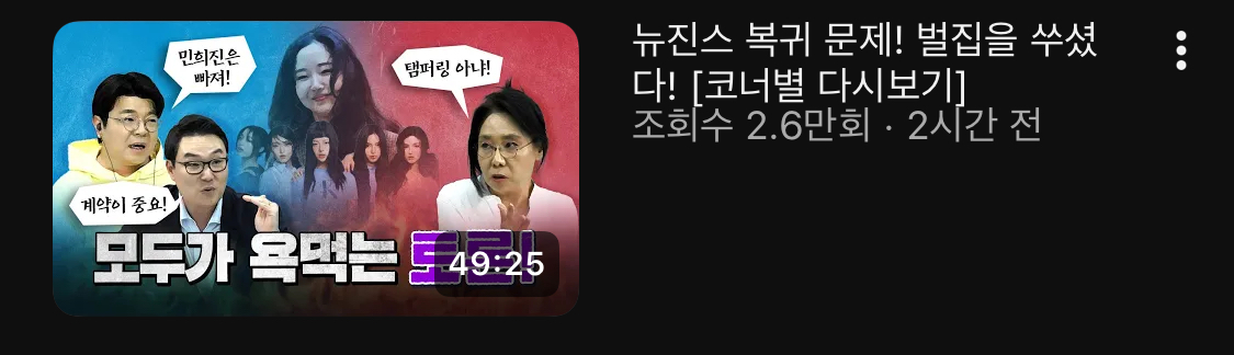 댓글 반응 ㄹㅇ 안좋은 뉴진스 민희진 매불쇼 영상 작성자 정보 축구왕숏다리 작성 작성일 2025.11.18 14:00 컨텐츠 정보 167 조회 목록 관리 글수정 글삭제 본문 관련자료 이전 얼탱이 터지고 뇌가 녹을 것 같았던 인천 택배 분실 사건 작성일 2025.11.18 14:00 다음 요즘 유행이라는 러닝 인스타 인증샷 작성일 2025.11.18 12:00 댓글 0 등록된 댓글이 없습니다. 로그인한 회원만 댓글 등록이 가능합니다. 목록 관리 글수정 글삭제