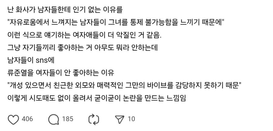 화사와 류준열의 공통점 작성자 정보 다이야본드 작성 작성일 2025.11.24 15:00 컨텐츠 정보 113 조회 목록 관리 글수정 글삭제 본문 관련자료 이전 나솔) 28기 출연자 일러스트 그림 작성일 2025.11.24 15:00 다음 한국 농구 레전드 김승현의 농구 철학 작성일 2025.11.24 15:00 댓글 0 등록된 댓글이 없습니다. 로그인한 회원만 댓글 등록이 가능합니다. 목록 관리 글수정 글삭제