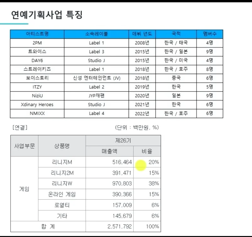 엔터사도 레이블들을 둬서 레이블마다 아이돌을 런칭시킴 = 게임사 레이블들 둬서 새 게임 출시시킴