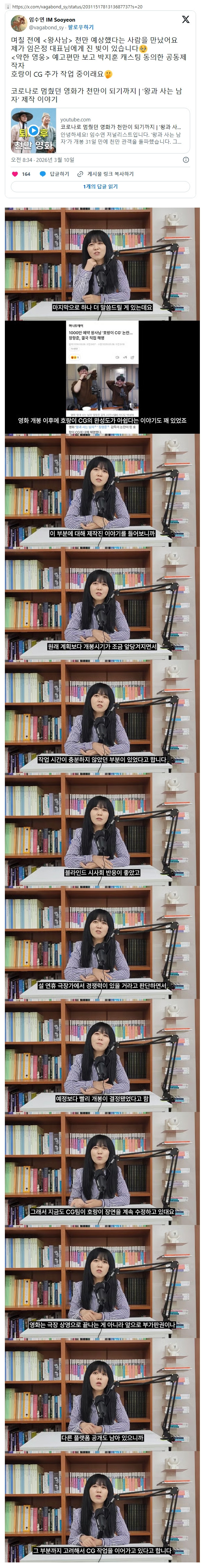 왕사남 유일한 옥의 티라는 호랑이 CG 근황 작성자 정보 순데렐라 작성 작성일 2026.03.10 17:00 컨텐츠 정보 108 조회 목록 관리 글수정 글삭제 본문 관련자료 이전 영화 '아바타4' 제작 상황 작성일 2026.03.10 17:00 다음 스스로 패완얼을 증명하는 맛피자 인스스 작성일 2026.03.10 17:00 댓글 0 등록된 댓글이 없습니다. 로그인한 회원만 댓글 등록이 가능합니다. 목록 관리 글수정 글삭제