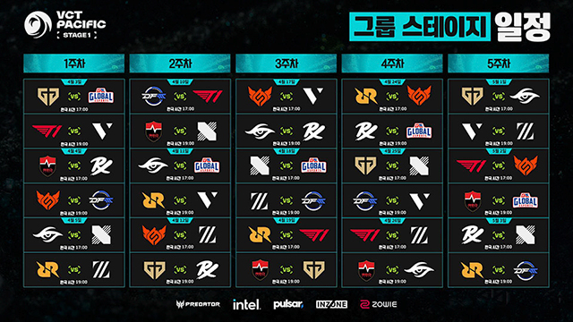 올해의 첫 번째 VCT 퍼시픽 정규 시즌인 스테이지 1은 4월 3일(금)부터 5월 17일(일)까지 7주 동안 진행된다. 이번 대회에는 ‘마스터스 산티아고‘를 제패한 농심 레드포스를 필두로, DRX와 젠지(GEN), T1을 포함해 총 12개 팀이 참가하여 치열한 승부를 펼칠 예정이다.