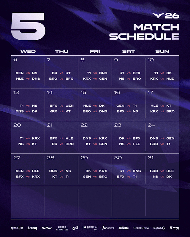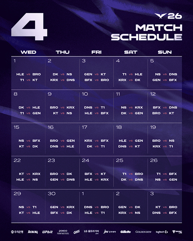 개막일인 4월 1일 2경기에 T1과 KT 롤스터가 출전한다. 두 팀은 오랫 기간 동안 이동통신사 라이벌로 불리며 명경기를 다수 연출했다. 지난 2025 월드 챔피언십에서는 두 팀이 결승전에서 대결을 펼쳤고 풀세트 접전 끝에 T1이 소환사의 컵을 들어올린 바 있다. 당시 T1과 KT 롤스터가 보여준 수준 높은 경기력에 전 세계 팬들의 이목이 집중되기도 했다.