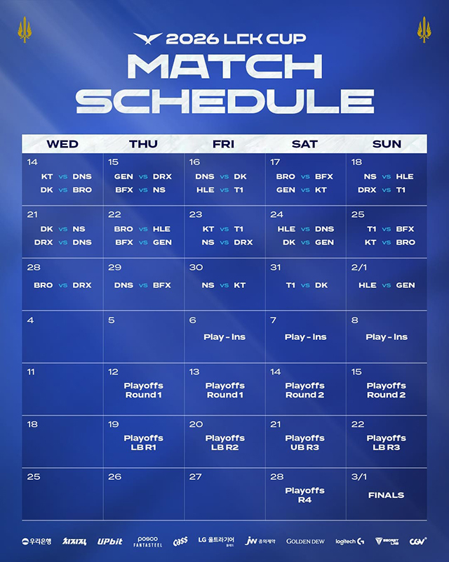 2026 LCK컵, KT vs DNS 대결로 14일 개막