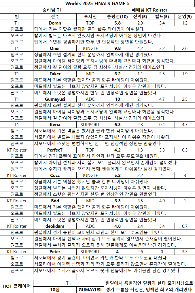 [포모스평점]Worlds 2025 FINALS GAME 5 작성자 정보 롤뉴스관리자 작성 작성일 2025.11.19 23:00 컨텐츠 정보 137 조회 목록 관리 글수정 글삭제 본문 최대영 기자 [email protected] 관련자료 이전 월드 챔피언십 결승 올랐던 덕담-피터, 2026년 DN에서 다시 호흡 맞춰 작성일 2025.11.20 19:00 다음 젠지-JDG에서 활동한 페이즈, T1과 2028년까지 3년 계약 입단 작성일 2025.11.19 21:00 댓글 0 등록된 댓글이 없습니다. 로그인한 회원만 댓글 등록이 가능합니다. 목록 관리 글수정 글삭제