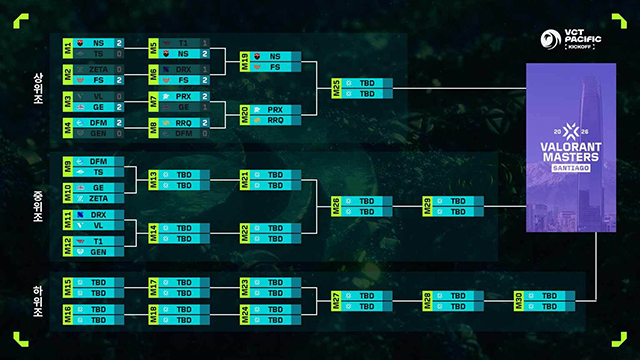 트리플 엘리미네이션 방식의 도입으로 VCT 퍼시픽 킥오프에 참가한 팀들은 최종 탈락까지 총 세 번의 기회를 얻는다. 상위조, 중위조, 하위조에서 각각 마스터스 산티아고의 1번 시드와 2번 시드, 3번 시드가 결정되는 만큼 마스터스 산티아고 출전을 노리는 팀들 간 경쟁이 여느 때보다 치열하게 전개되고 있다.