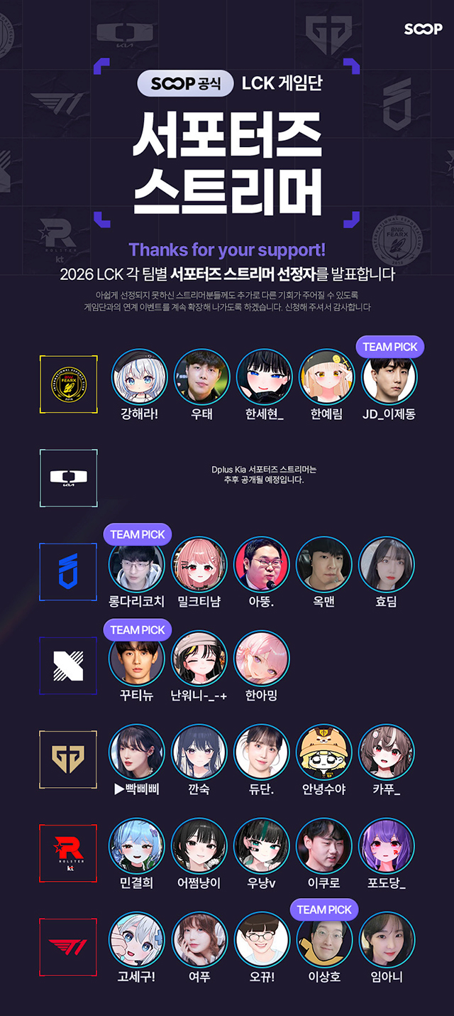 SOOP, LCK 구단별 서포터즈 스트리머 발표
