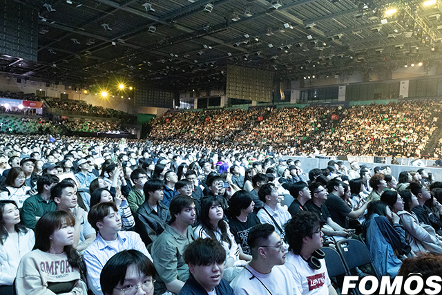 메인 이벤트인 최종 결승 진출전 경기에도 뜨거운 열기가 이어졌다. 전용준 캐스터의 오프닝으로 시작된 이날 경기에서 선수 소개가 이어질 때마다 관중들의 함성은 경기장을 가득 채웠고, 특히 '쇼메이커' 허수가 소개될 때는 더욱 큰 함성이 이어졌다.